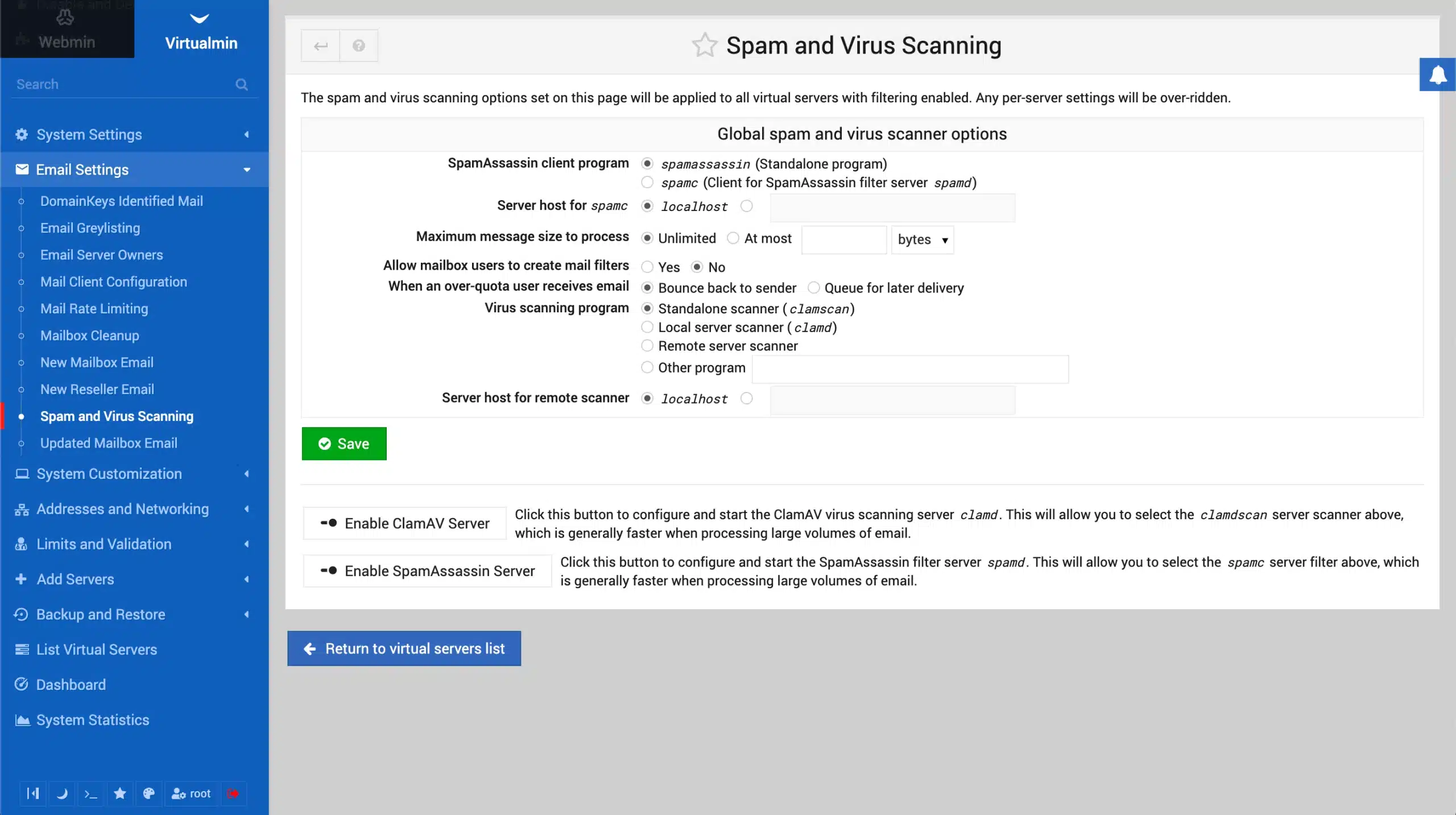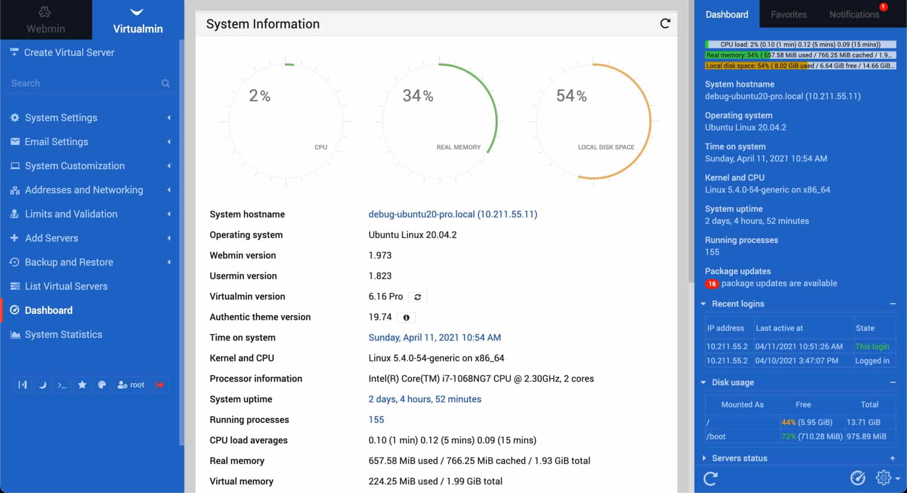 Virtualmin UI