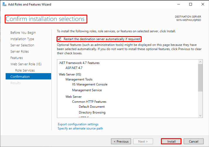 - Finally, confirm the installation role and click on install.
