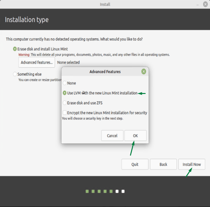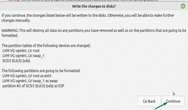 - The first option also gives to partition your system files in LVM mapper which have basic functionality like Volume groups (VGs) that can be resized online by absorbing new physical volumes (PVs) or ejecting existing ones. Logical volumes (LVs) can be resized online by concatenating extents onto them or truncating extents from them. Select LVM and click on Install now and Continue.