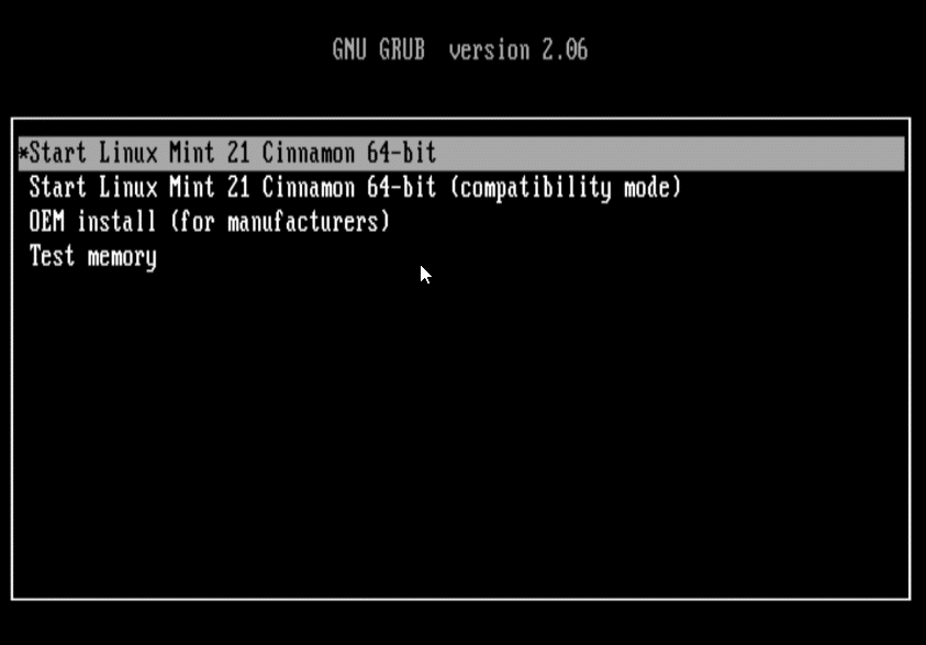 - Connect Linux Mint 21 bootable USB to your Desktop and reboot to the installation menu. Select Start Linux Mint 21 Cinnamon