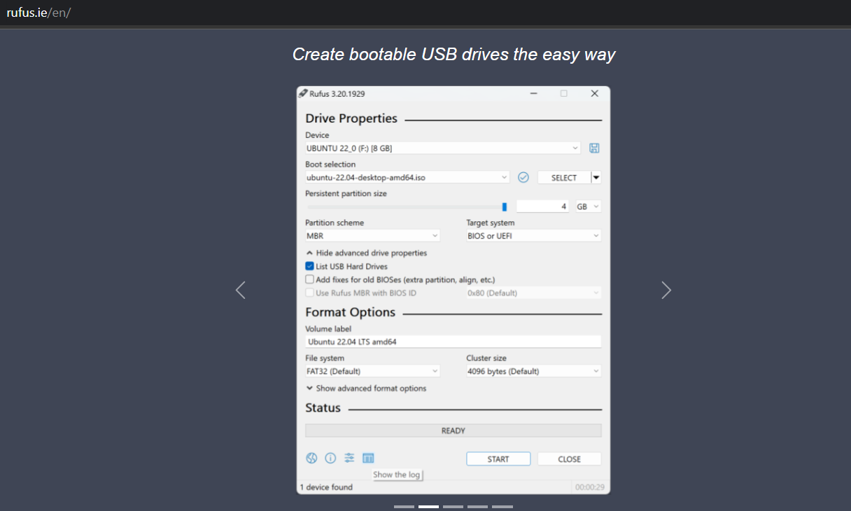 - Once the download is finished head over to Rufus to create a bootable USB.