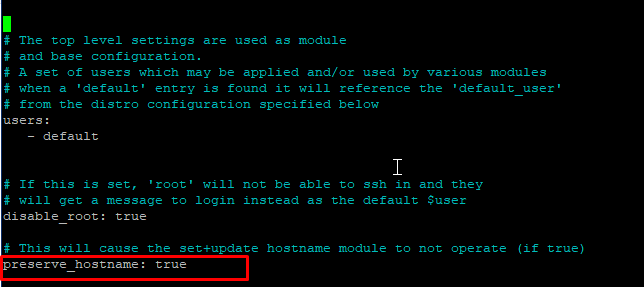 Now open the respected cloud.cfg file using nano or any other editor. We have to change the Preserve Hostname option to TRUE instead of FALSE. To do that open the file using given command