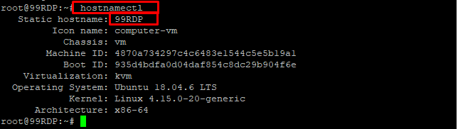 To change the hostname on Ubuntu you can simply run the given command with your hostname included. Replace 99RDP with your required hostname.