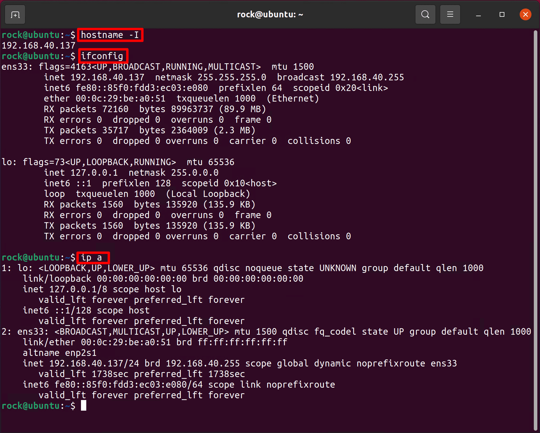 - hostname -I