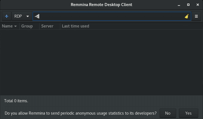 Launch Remmina by clicking on the icon. You should see a screen that resembles this: