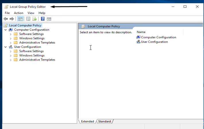 • You will enter the Local Group Policy Editor window.