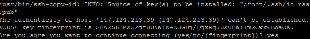 The first time we will use this command it will ask for confirmation regarding connecting the new host. To continue type yes and press enter.