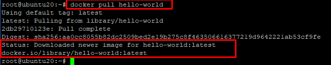 A Docker container is a virtualized runtime environment used in application development. It is used to build, run, and deploy applications decoupled from the underlying hardware. Docker containers can use a single machine, share its kernel, and virtualize its operating system to run more isolated processes. Running a Docker containers need a runnable image to exist. Containers are dependent on images, because they are used to construct runtime environments and are needed to run an application. In this guide we are going to use the hello-world example. First we need to download the hello-world images from docker hub. To do so run the given command.