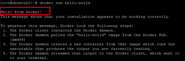 After it is done successfully we can run the hello-world image. To do so run the given command in terminal.