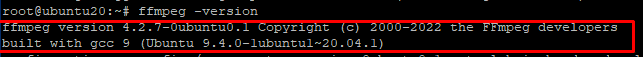 The output will represent the current version of installed FFmpeg, which confirms that the installation is done without any errors.