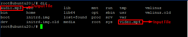 This will take some time depending upon the computing source and file length. Once it is done you can check the present directory for the new file named audio.mp3. To check the file run the dir command to check the list of files in that directory.