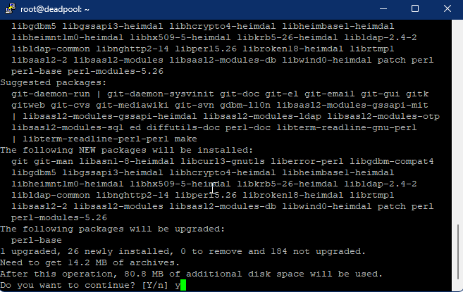 • First, run the given command to install the dependencies required to compile Git from the source.