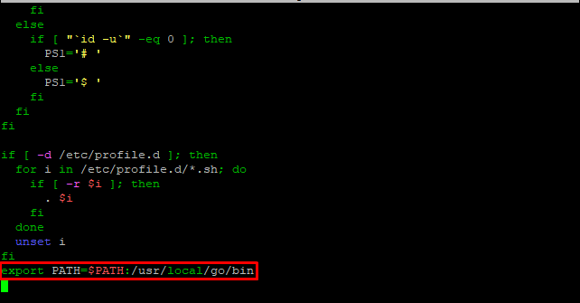 Next,we are going to add the Go directory path to our environment variables so that the system can catch GoLang codes. You can add the Go directory path to either the /etc/profile file for the system-wide installation or the $Home/.profile file specifically defined for the current user’s installation. Using a source code editor, open the /etc/profile file as follows:
