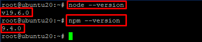 Next we can verify the installation is complete by checking the node and npm version.
