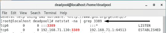 This “netstat” command gives the output that the XRD service is listening on port 3389.