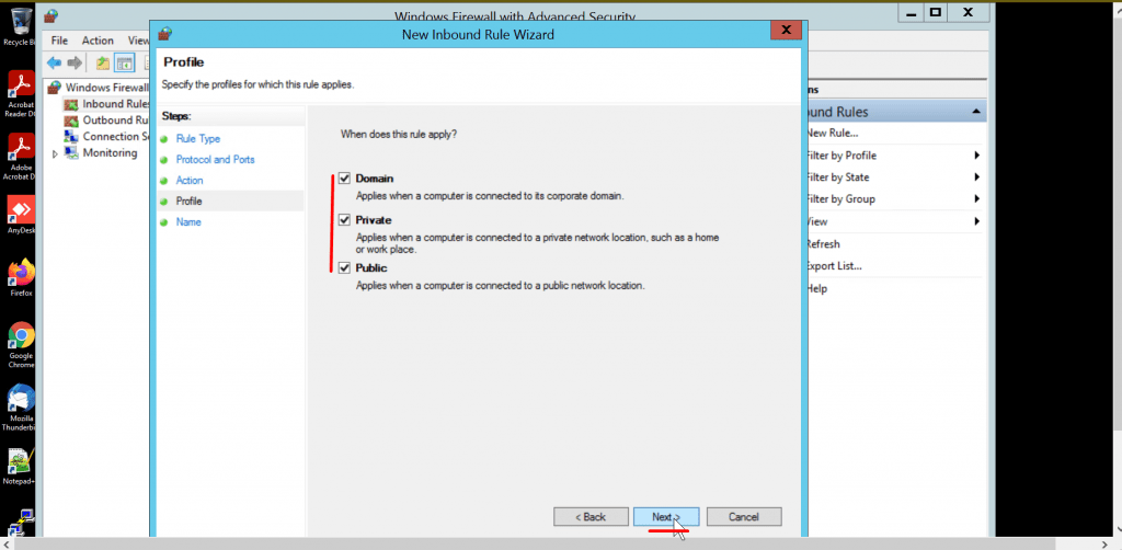 Windows Firewall On Admin RDP, Private RDP,  ensures that only the services necessary for the chosen function are exposed to the outside world (the firewall will automatically configure itself for new server roles, for instance, and when certain server applications are installed).  In simple words, a firewall analyzes the incoming and outgoing traffics of a connection for threats.  Now let’s see how to open a port for incoming traffic.:-