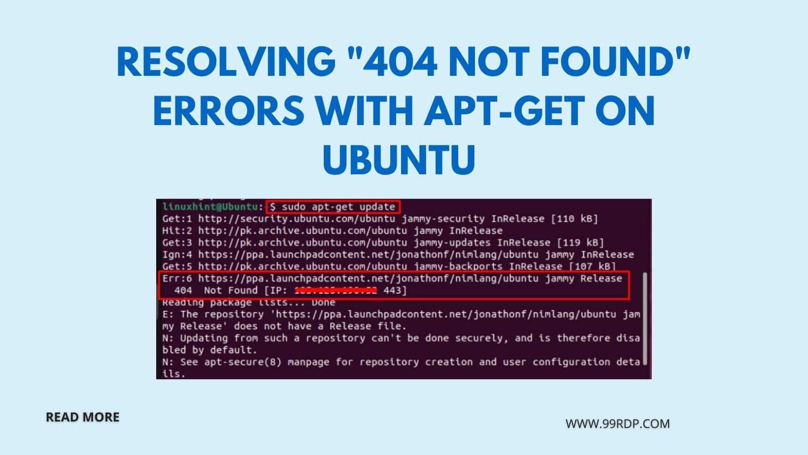 Resolving “404 Not Found” errors with apt-get on Ubuntu is a manageable task once you understand the underlying causes and solutions. By following the steps outlined in this article, you can troubleshoot these errors effectively and ensure a smoother package management experience on your Ubuntu system.