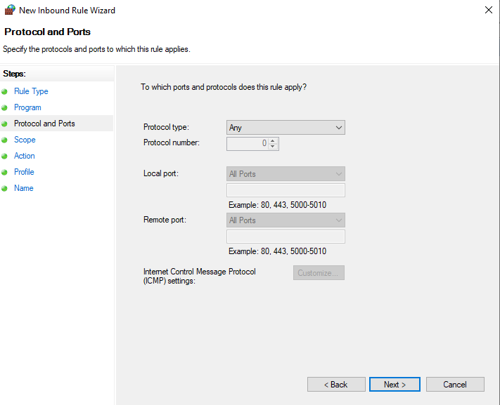 You will have to check that the Protocol type in this section is selected to ‘Any,’ just as the screenshot below.