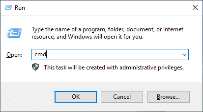 1. Open Run by pressing Windows key + R, then input CMD and press OK.