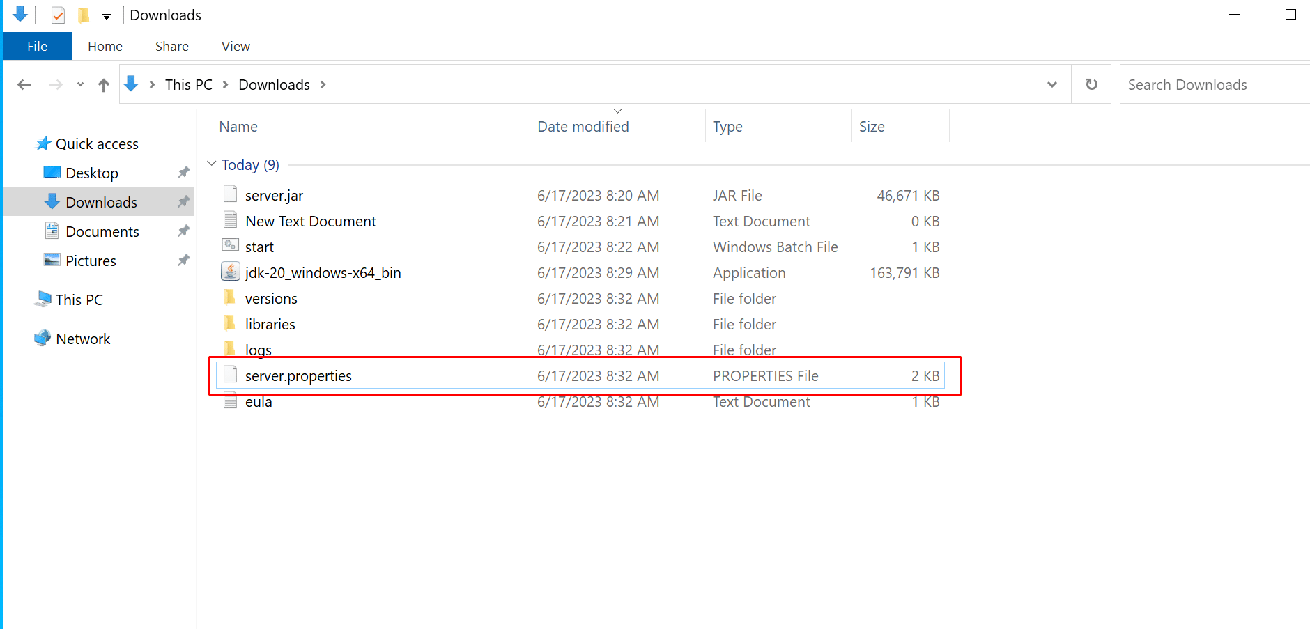- Double-click the “start.bat” file to launch the Minecraft server.