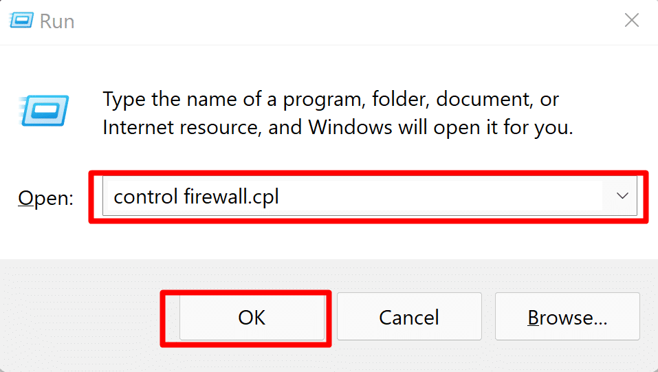 Now Type “control firewall.cpl“ and press Enter.
