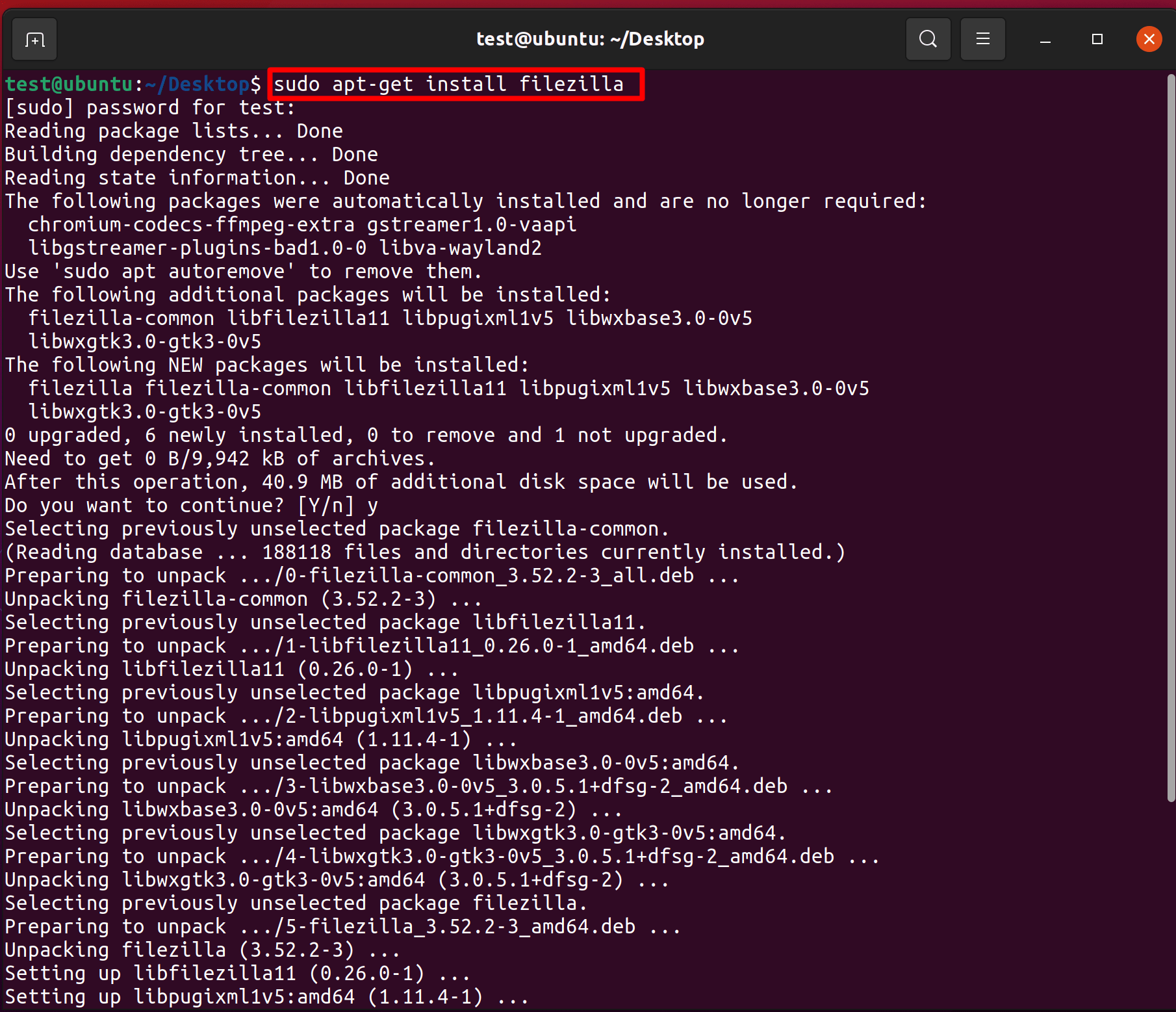 sudo apt-get install filezilla