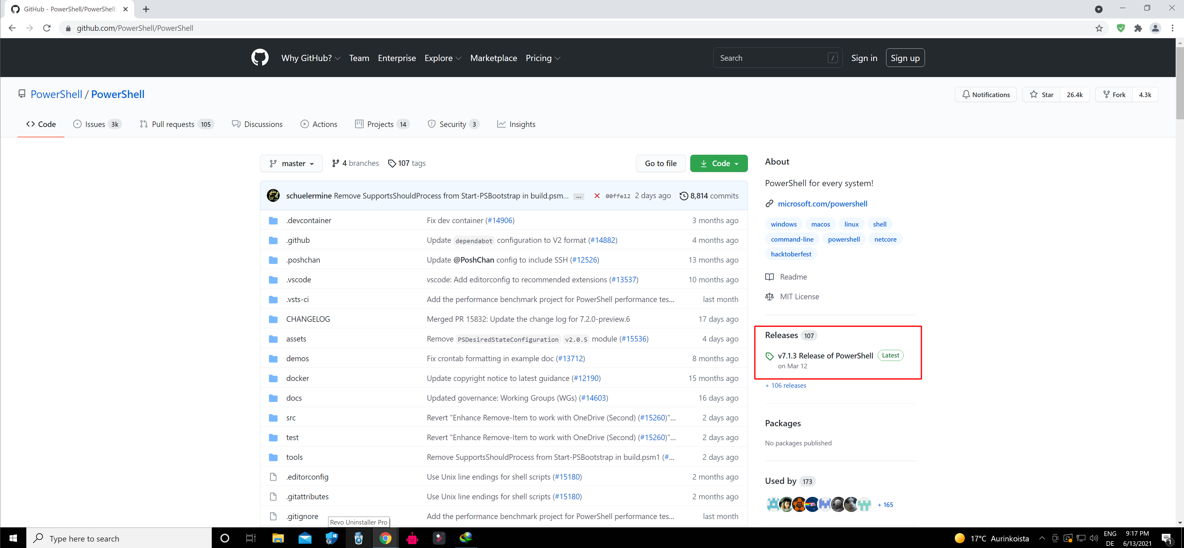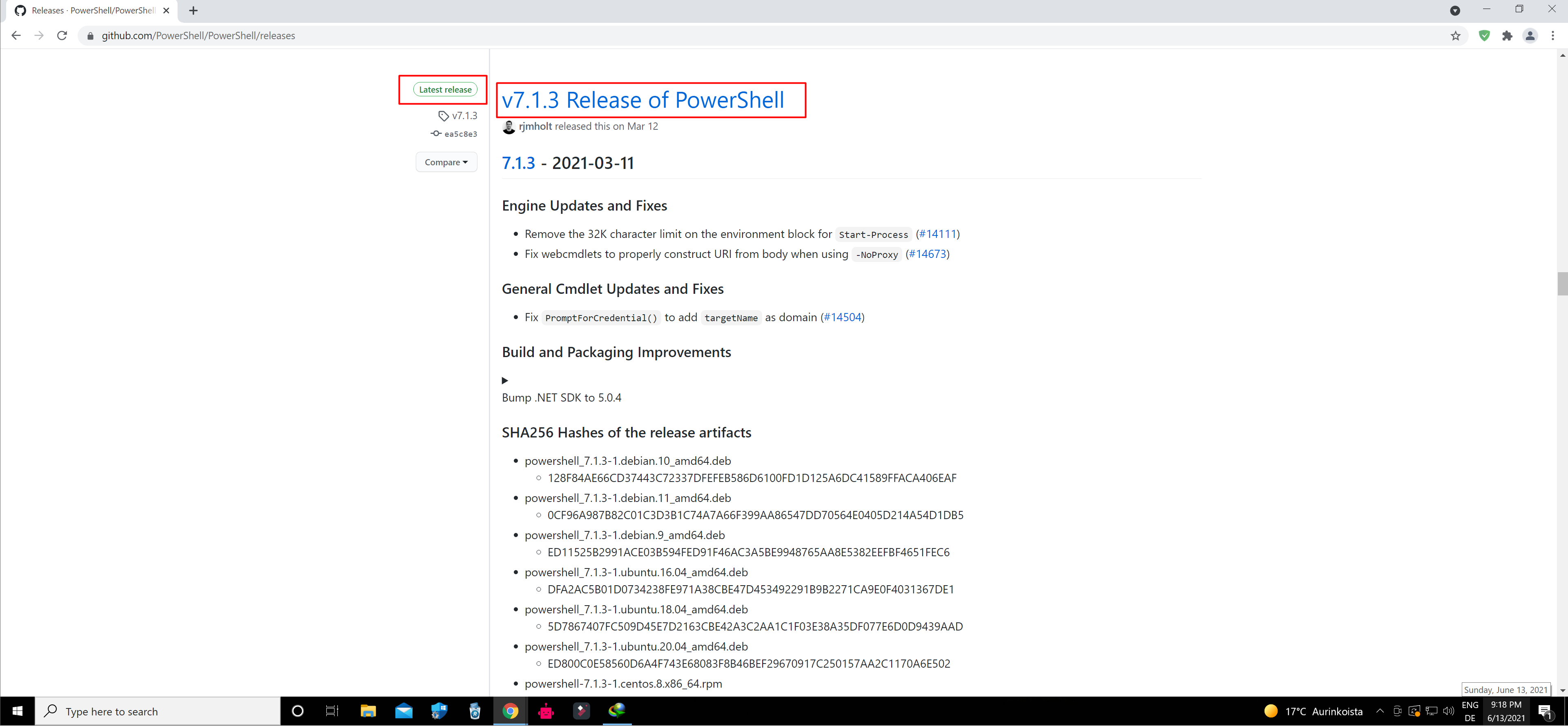 - The latest stable release is – v7.1.3 Release of PowerShell