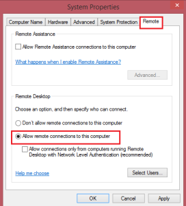 5 .Locate Remote Desktop in the left side and click on it.